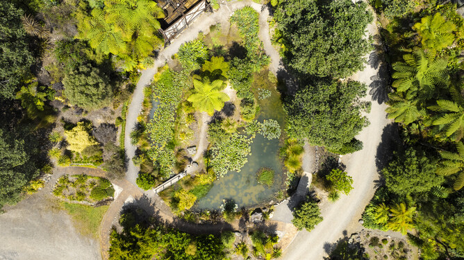 Photo: Aerial view of Te Puna Quarry Park (Tourism BOP)